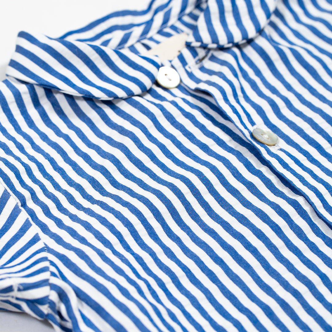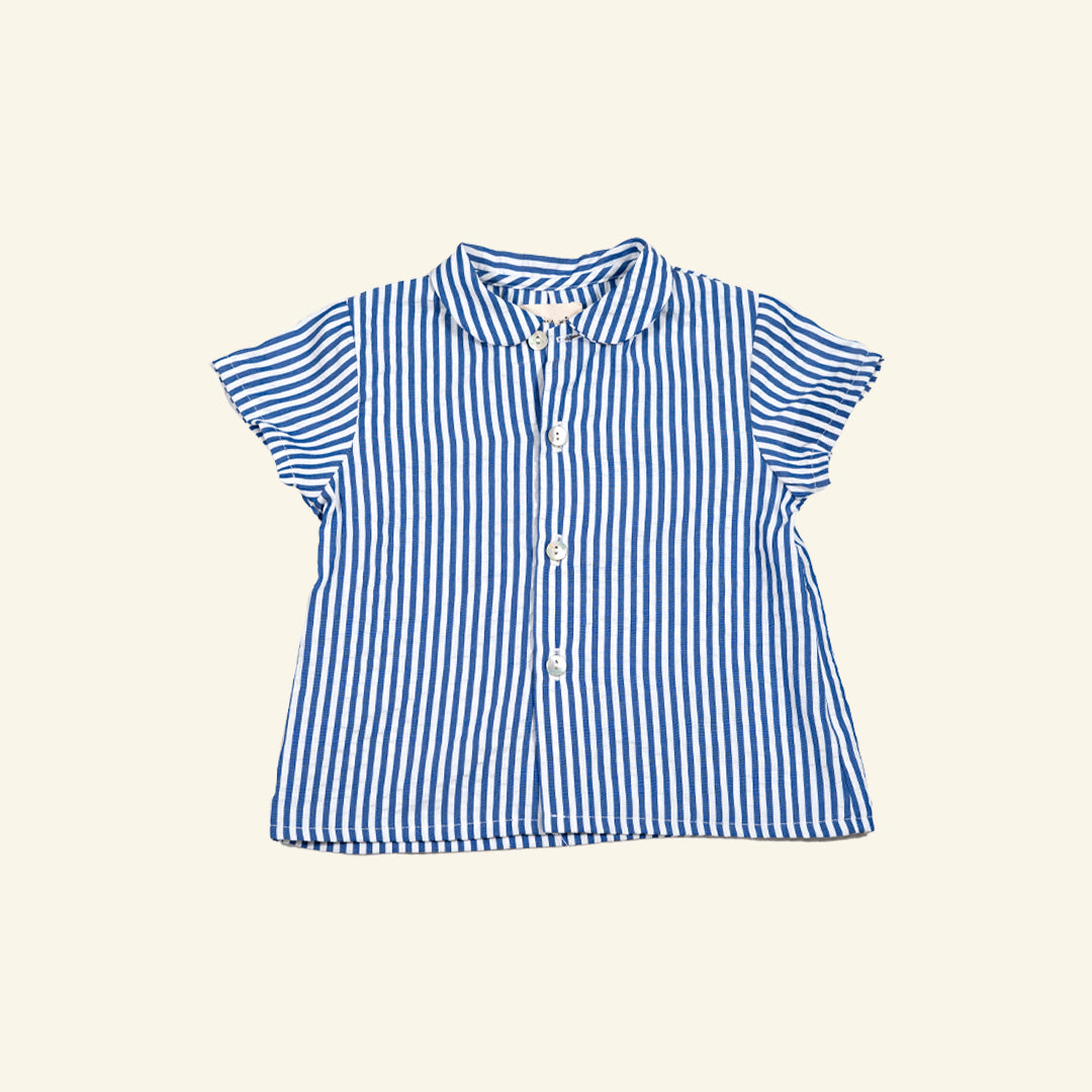 Blusa con cuello bebé de rayas azul marino. Tejido fresquito y muy favorecedor.