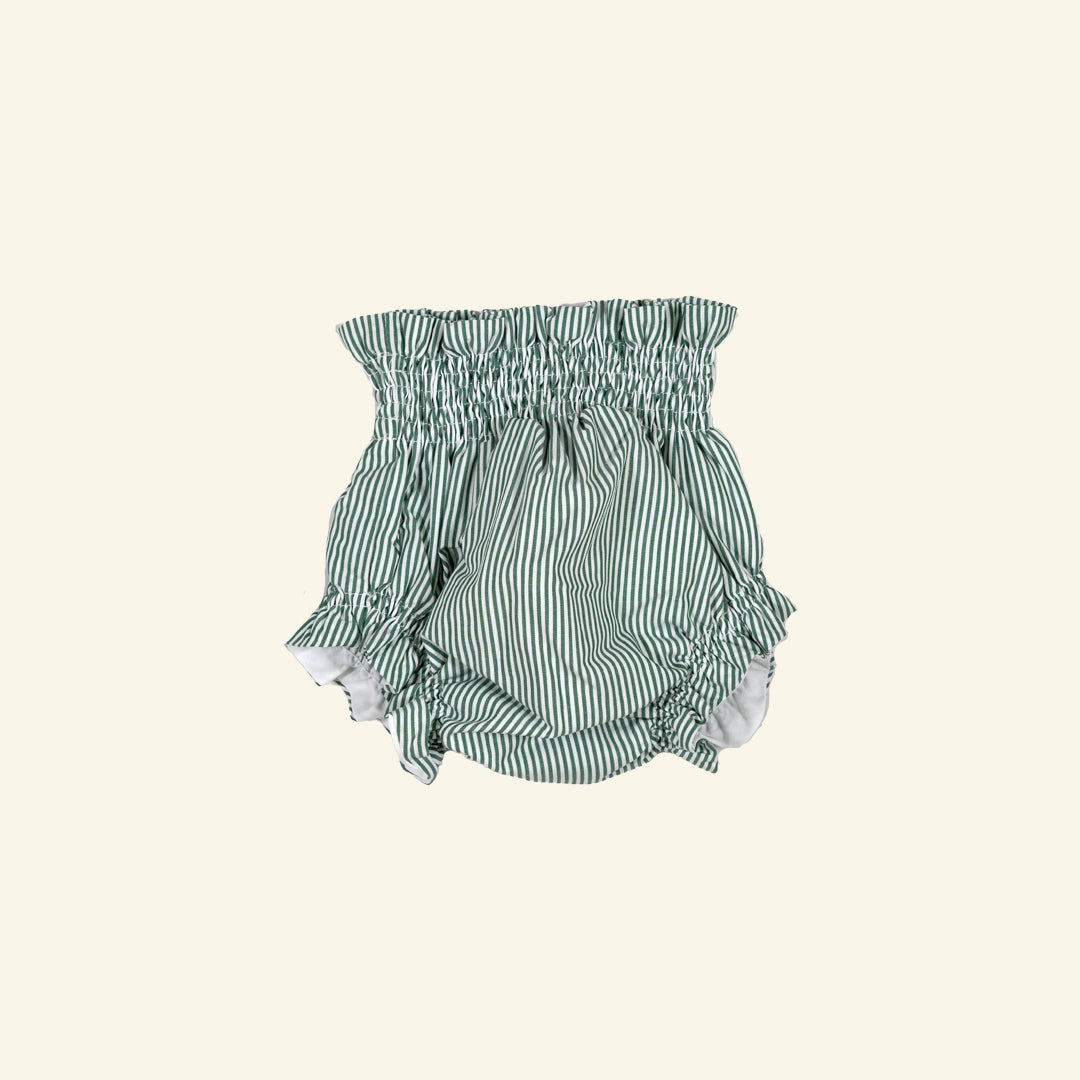 Cubrepañal engomado de rayas verdes y blancas. Gomas blanditas y suaves que no aprietan a los bebés. Forrado