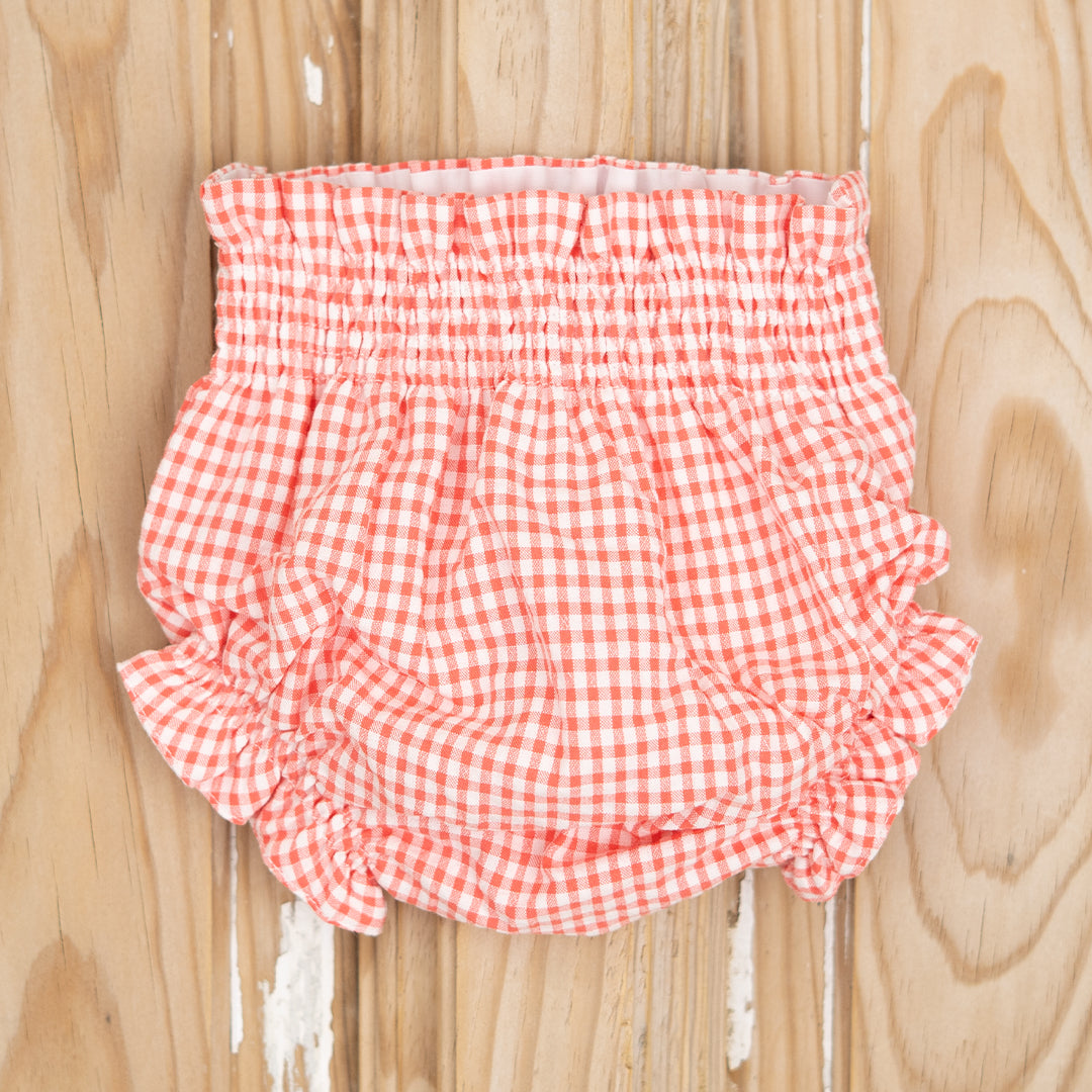 Cubrepañal engomado en vichy naranja mandarina y blanco. Gomas blanditas y suaves que no aprietan a los bebés. Forrado