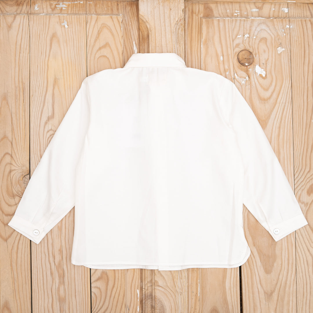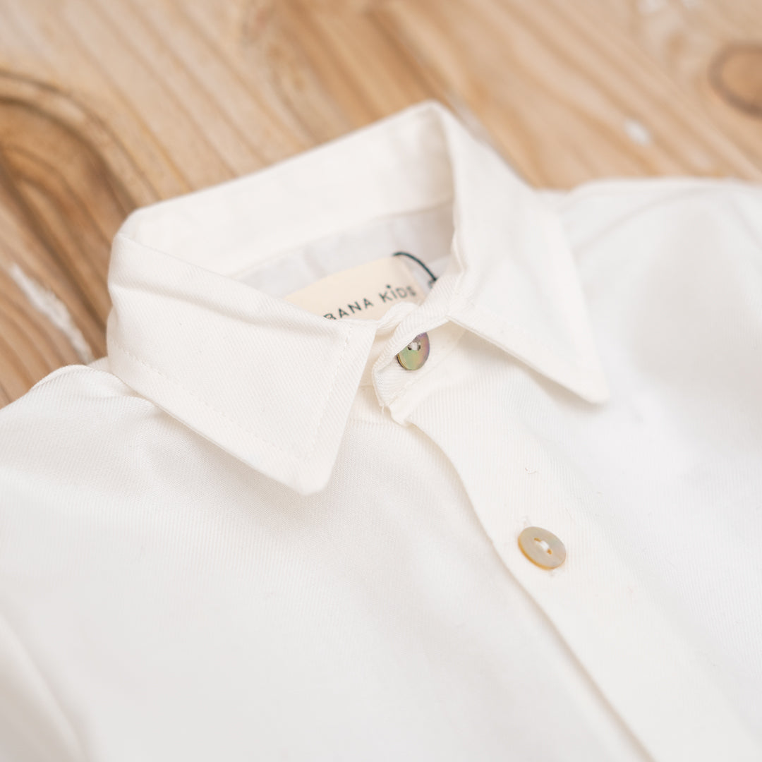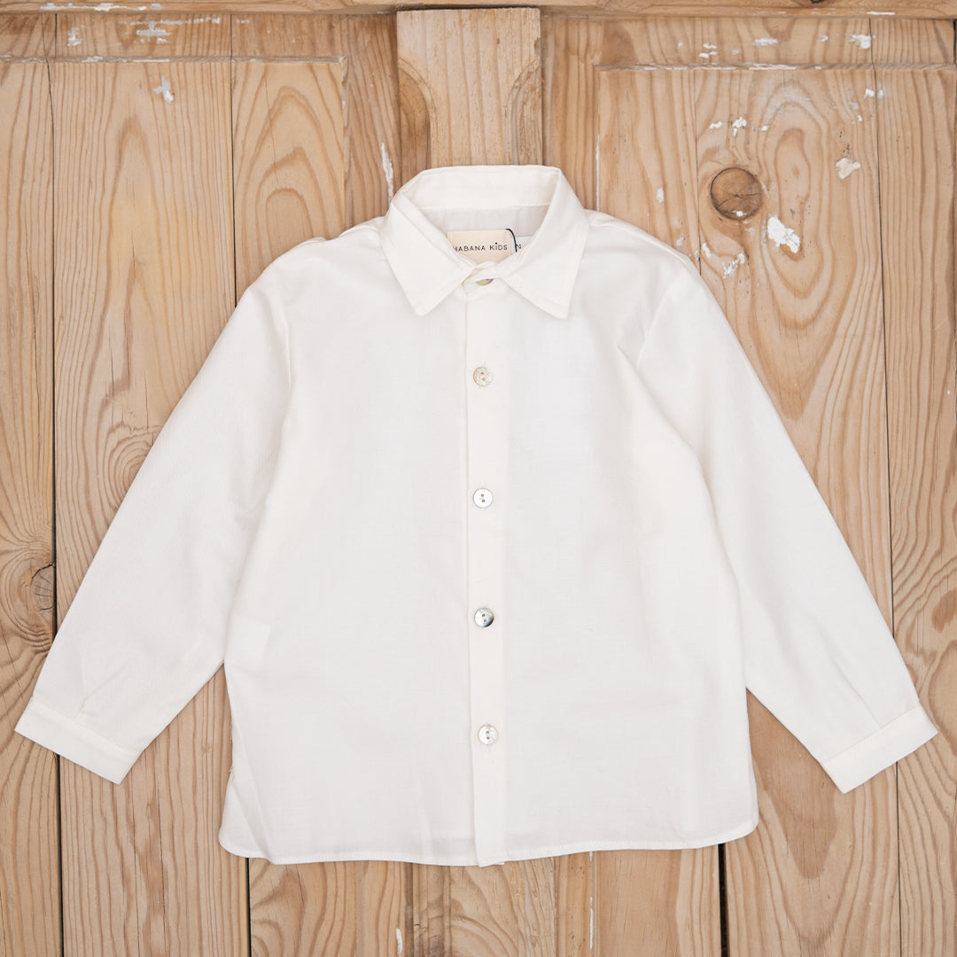 Camisa blanca de manga larga con cuello para niños.
