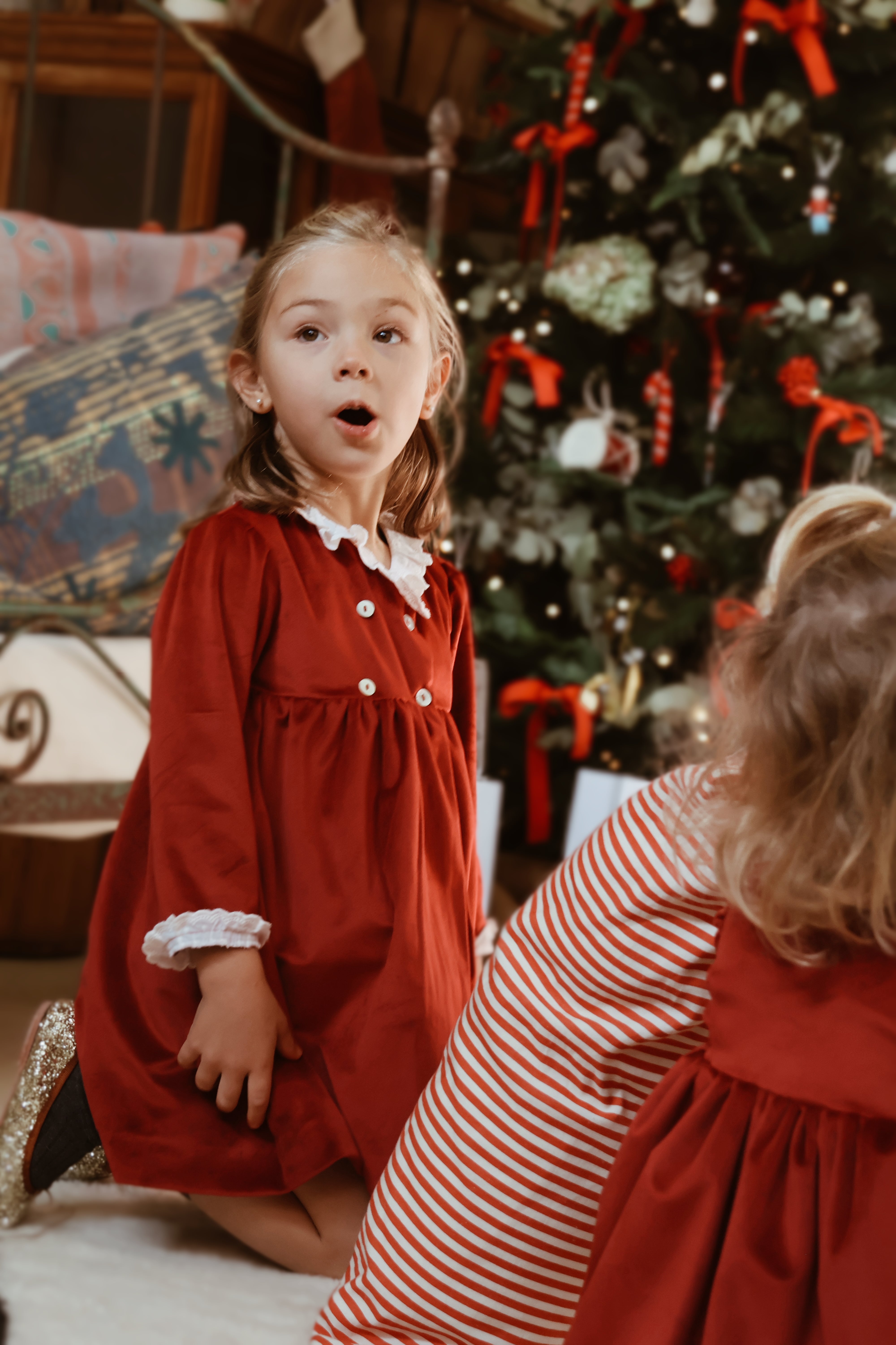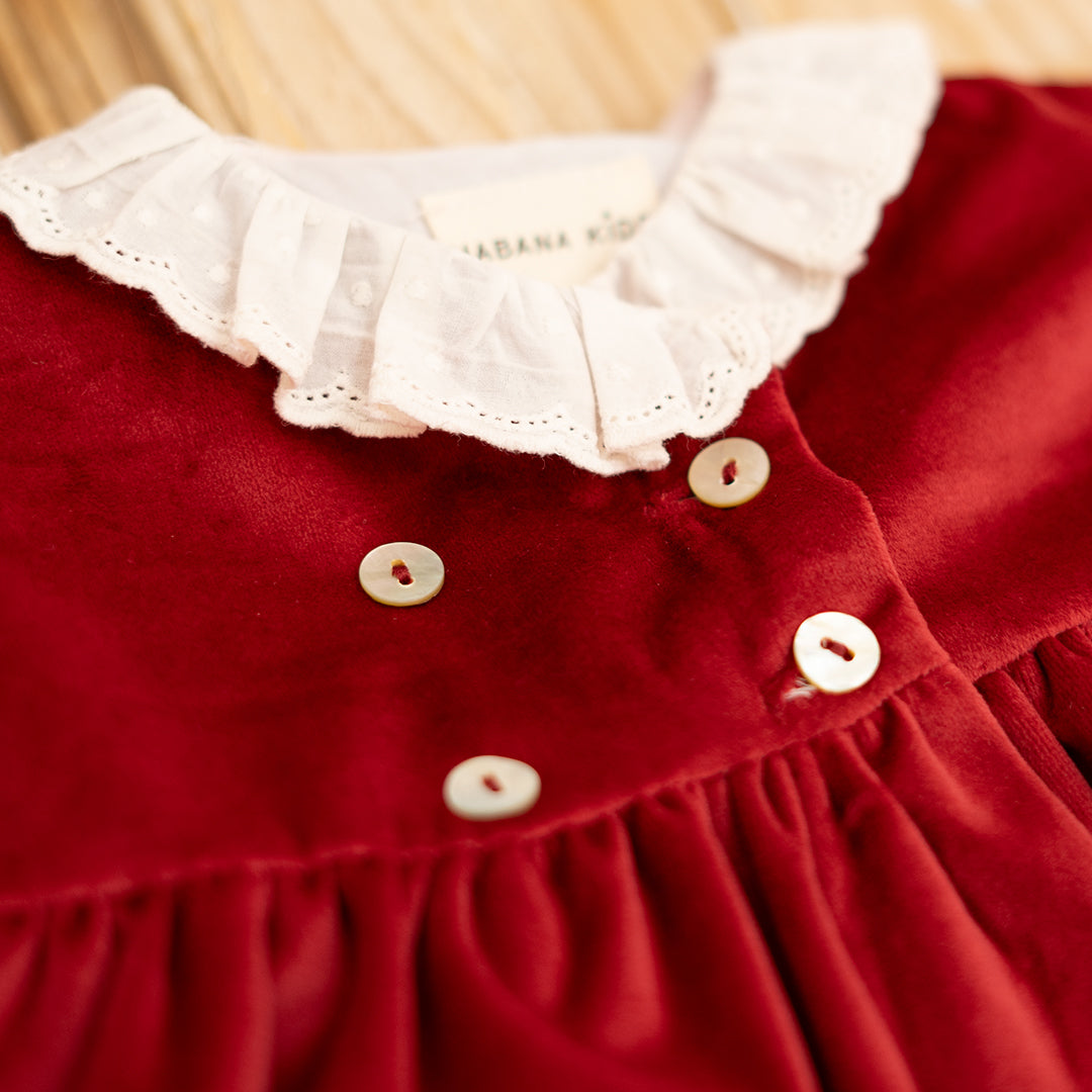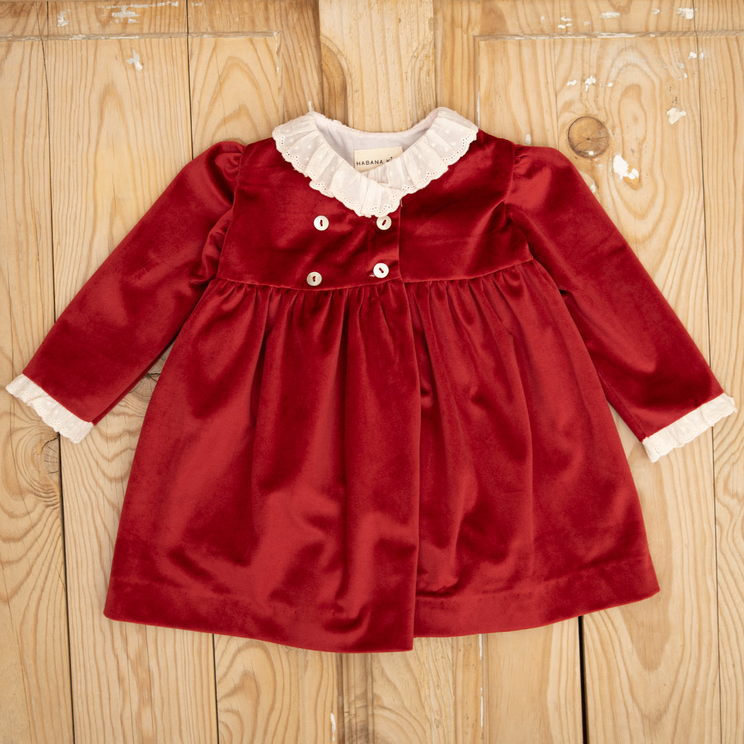 Uno de nuestros vestidos más especiales de la temporada. En terciopelo burdeos con encaje, todo un sueño hecho vestido. Además tiene un corte de lo más favorecedor, cruzado con un ligero escote en V y cuatro botones en delantero.