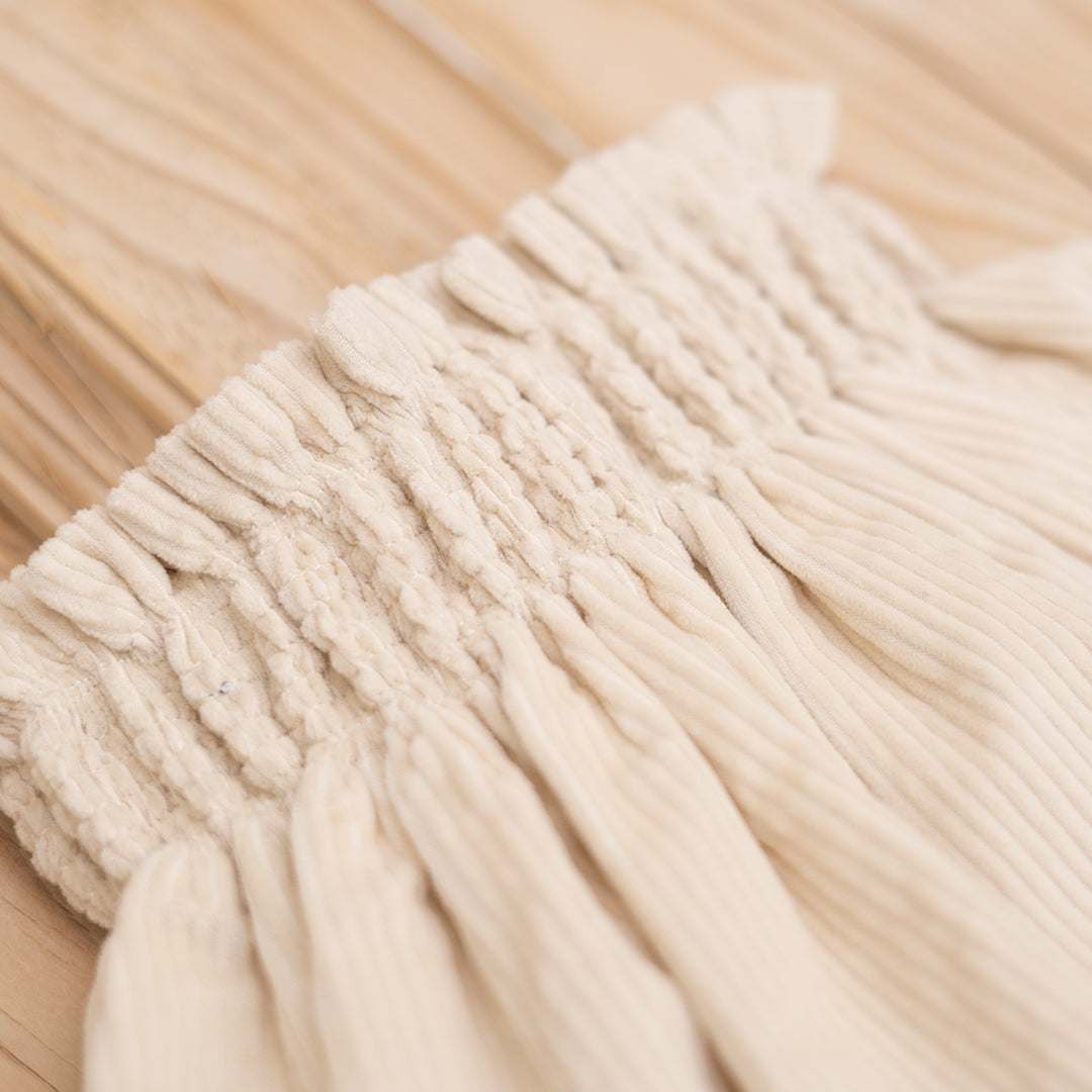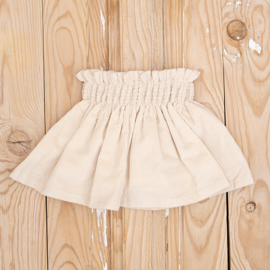Monísima faldita corta de pana color crudo. Engomada a la cintura, lo que la hace, además de cómoda, muy estilosa y favorecedora. Sin duda, será una de sus prendas favoritas.
