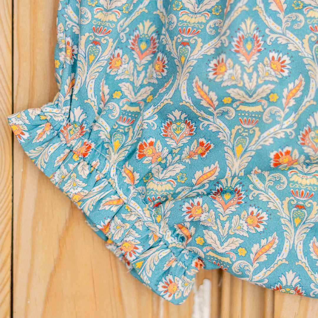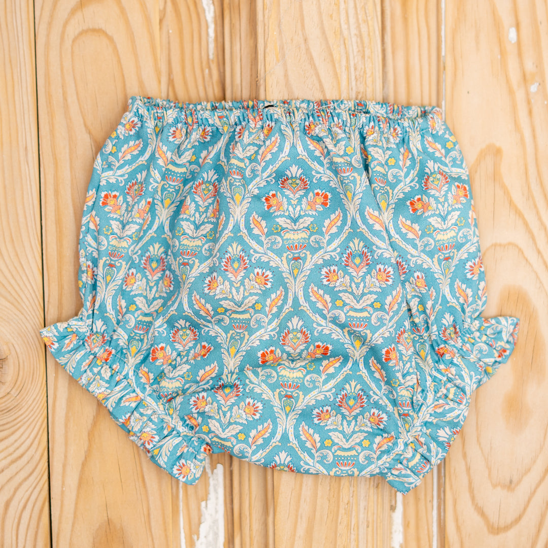 Cubrepañal engomado en tejido estampado de flor verde. Gomas blanditas y suaves que no aprietan a los bebés.