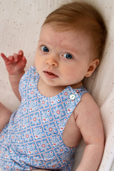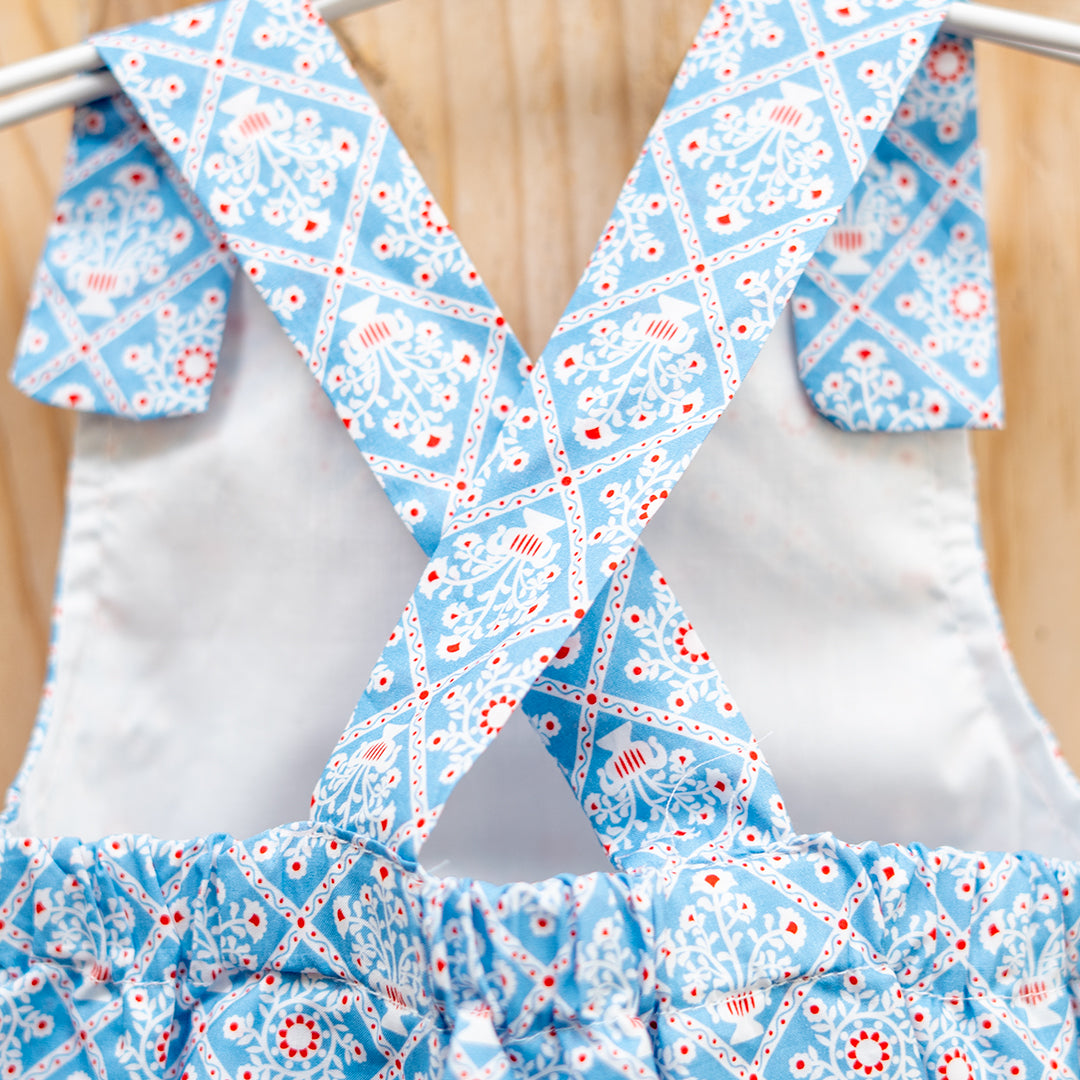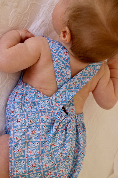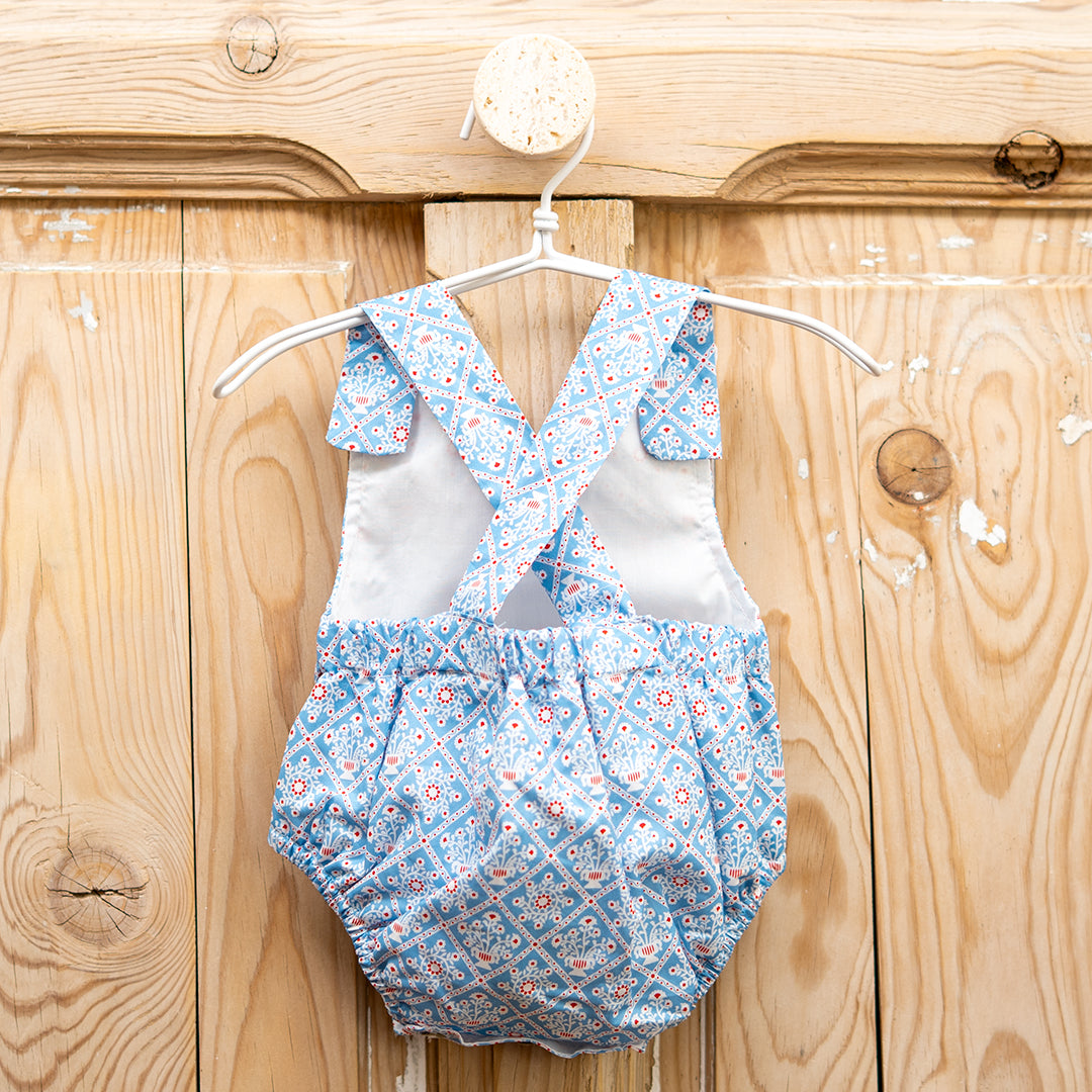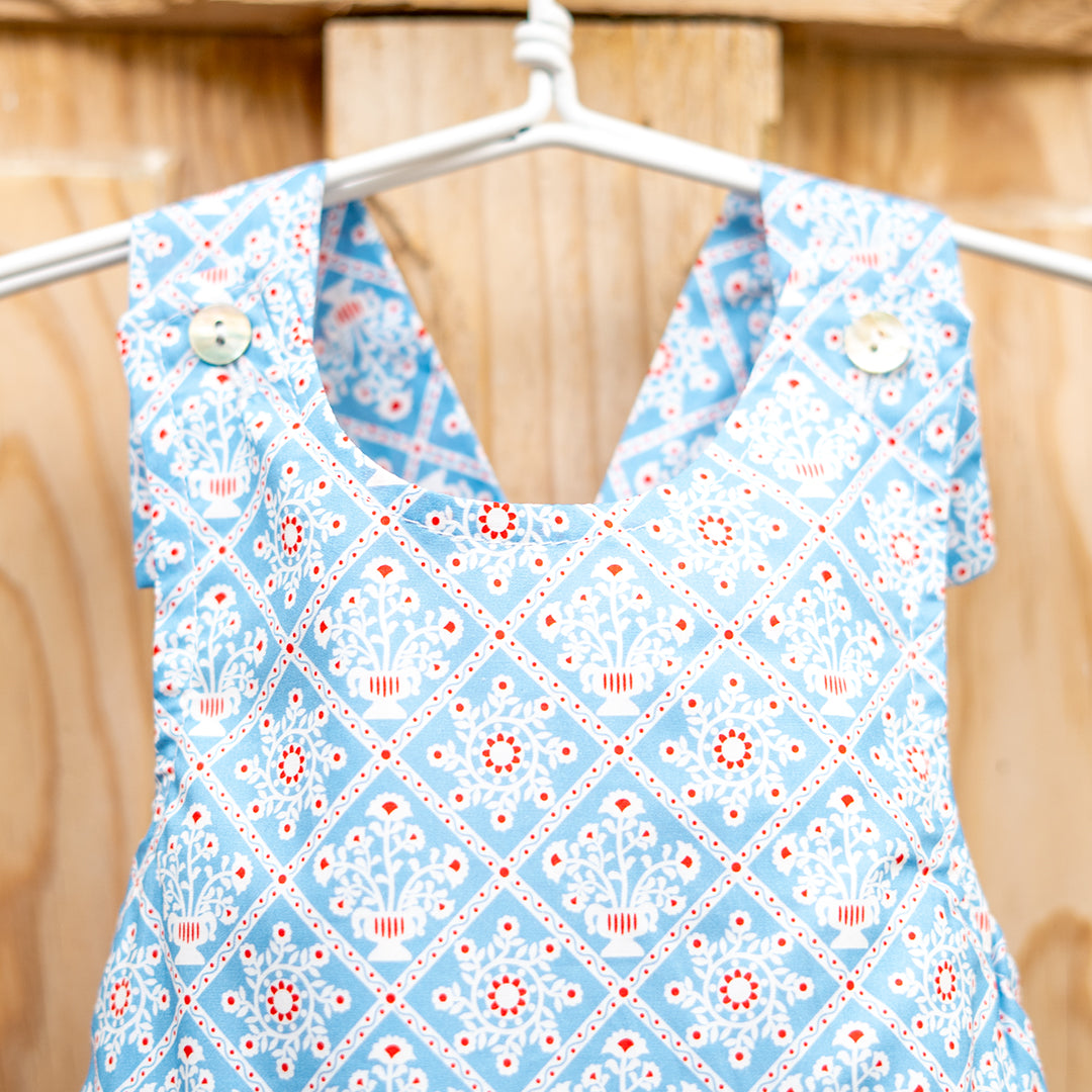 Ranita de bebés en nuestro estampado mosaico, de tirantes cruzados en espalda y gomita en cintura y muslos, esta es muy blandita para no apretar el cuerpo del bebé. Botón en el tirante, lo que alarga la vida de la prenda. Nos encanta tanto con blusita debajo como sin nada. Prenda forrada.