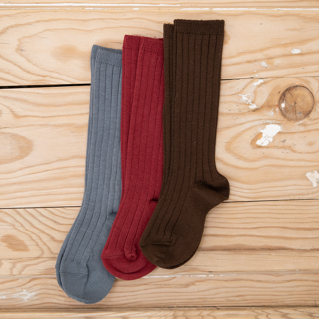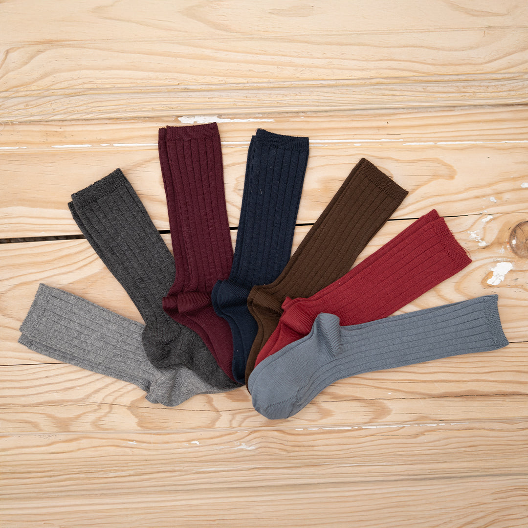 Calcetines altos básicos en canalé de algodón. Disponible en distintos colores que combinan con todas nuestras colecciones. También tenemos leotardos.