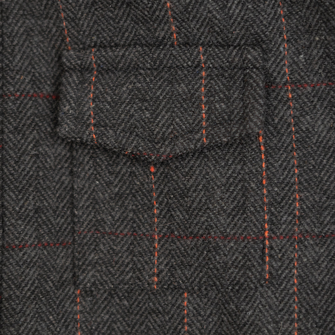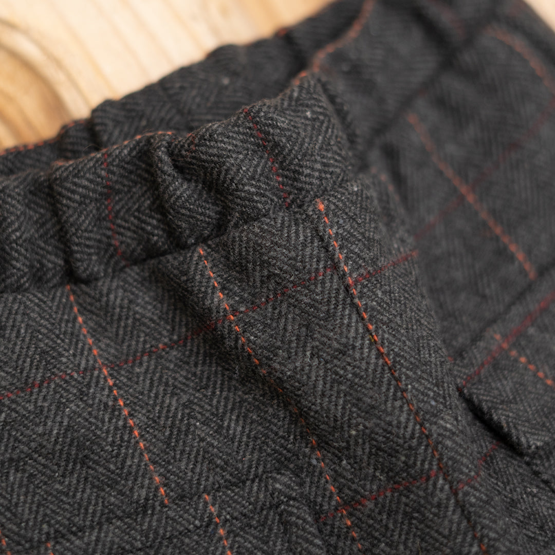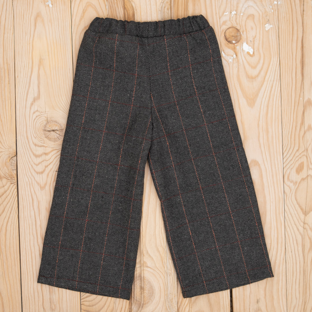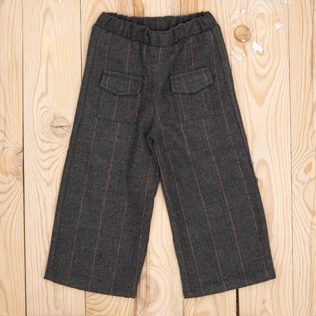 Pantalón largo en tejido lanoso de espiga gris. Ideal, estiloso y calentito para los días de otoño invierno. Muy estiloso y favorecedor, con bolsillos en delantero. Cinturilla de goma en espalda y goma elástica ajustable interior. Bolsillos laterales funcionales y cierre con cremallera y botón.