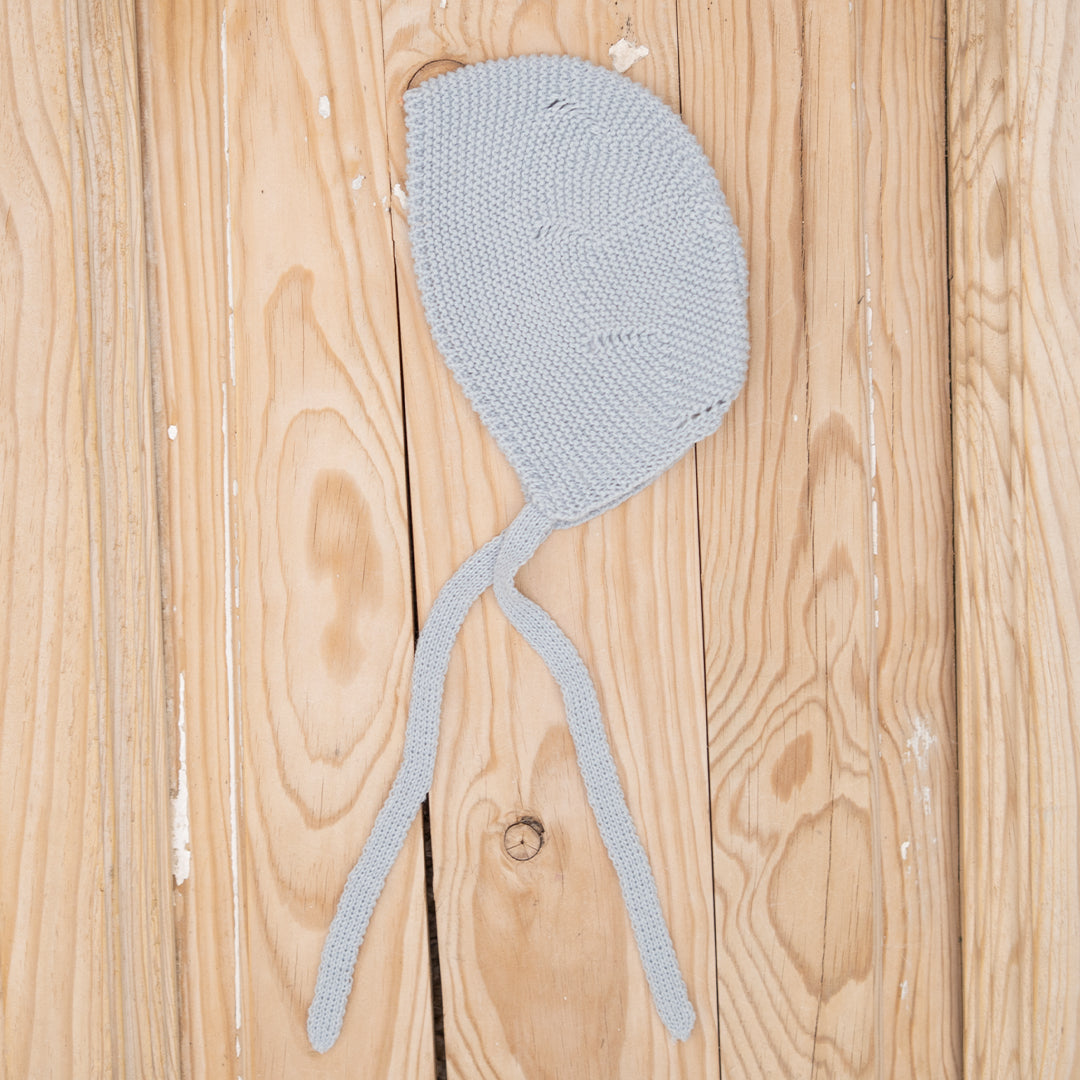 Capota de punto con lazada para anudar y que no se les caiga. Ideal para combinar los looks de bebé y que vayan calentitos. Disponible en varios colores.