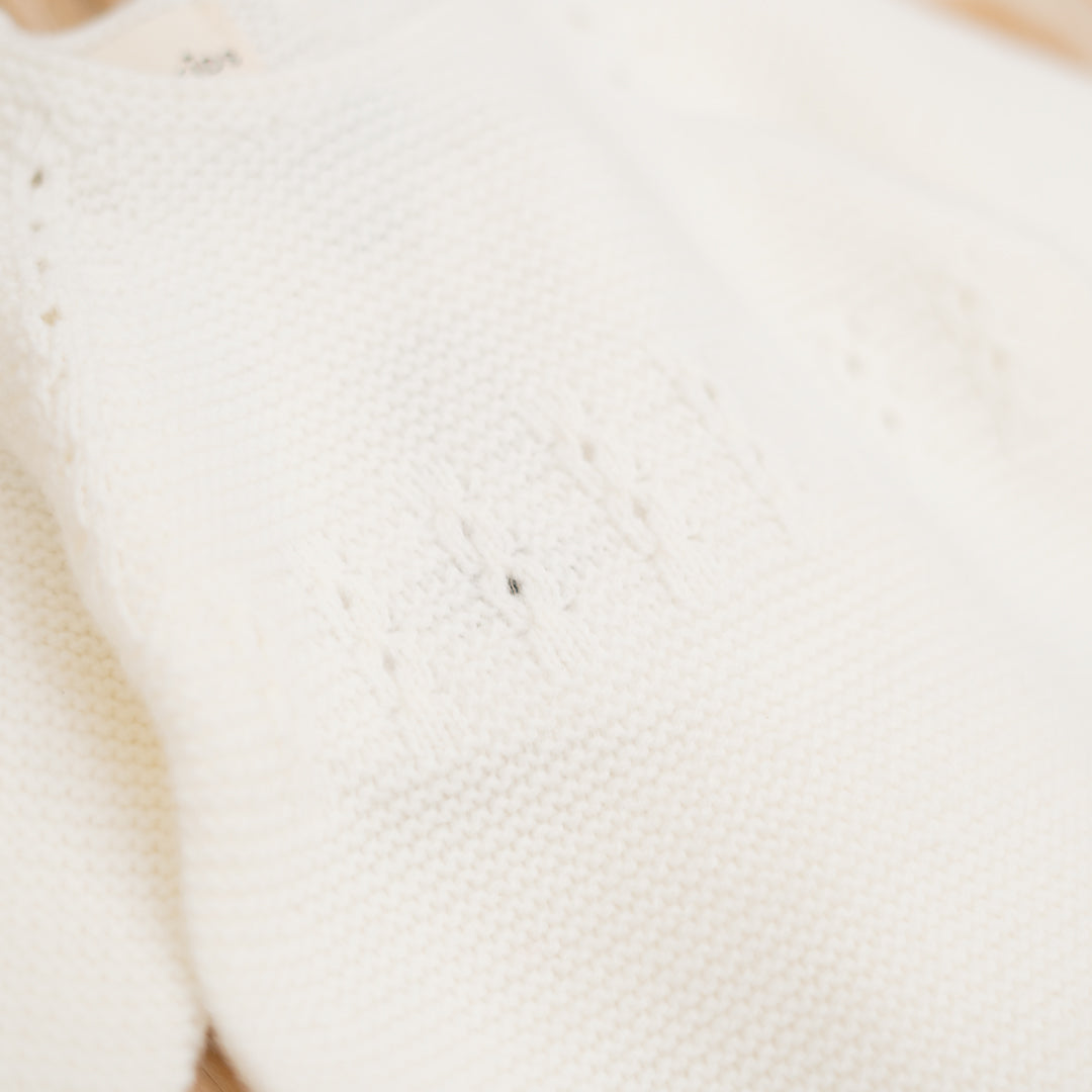 Pelele de punto para bebés, ideales para combinar con camisas de nuestra colección y que vayan calentitos y sobretodo cómodos. Esta ranita tiene detalles de calados en pechera, sisas y puños que lo hacen muy especial y además visten el look, haciéndolo más elegante. Disponible en varios colores para combinar con toda la colección y coordinar con hermanos mayores.