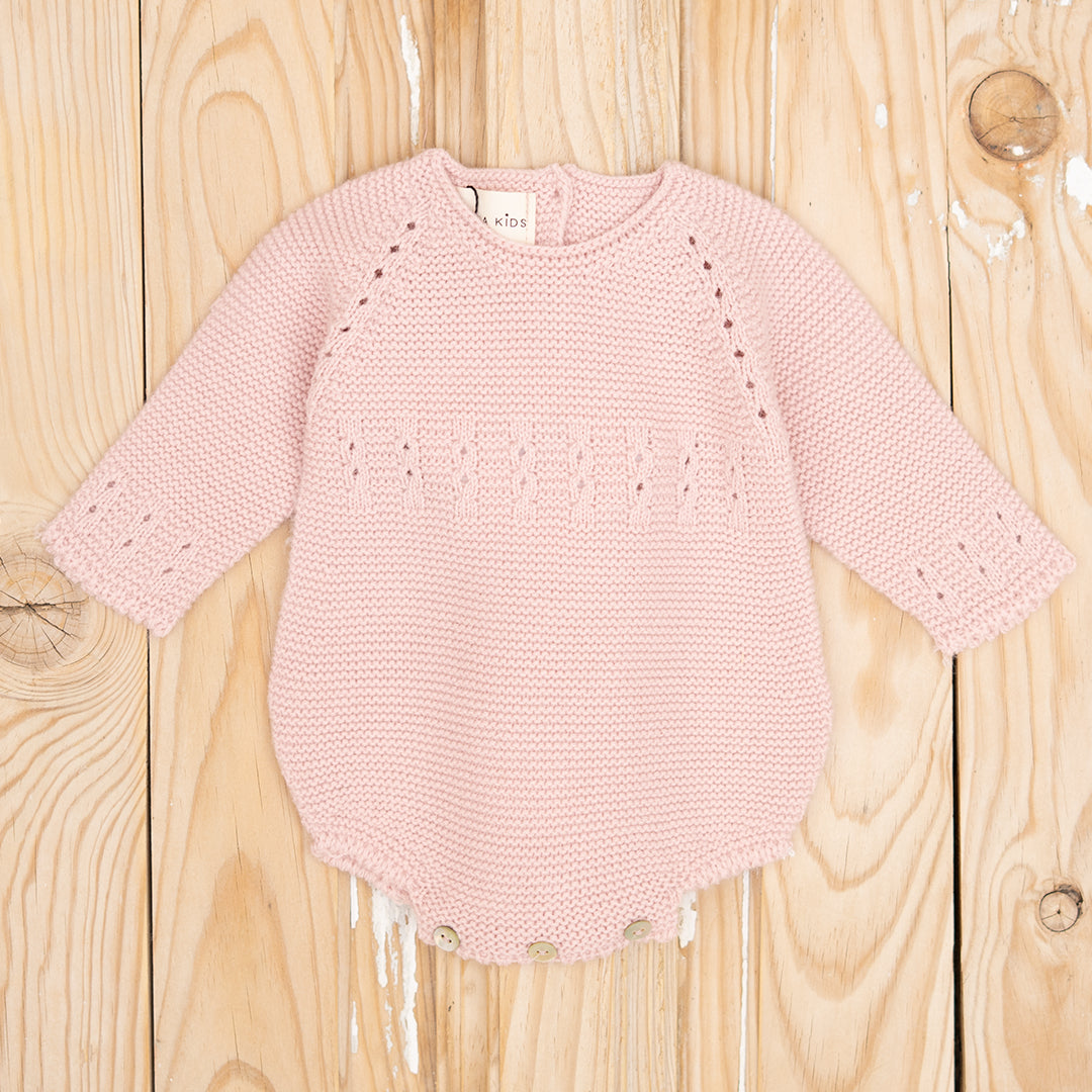 Pelele de punto para bebés, ideales para combinar con camisas de nuestra colección y que vayan calentitos y sobretodo cómodos. Esta ranita tiene detalles de calados en pechera, sisas y puños que lo hacen muy especial y además visten el look, haciéndolo más elegante. Disponible en varios colores para combinar con toda la colección y coordinar con hermanos mayores.