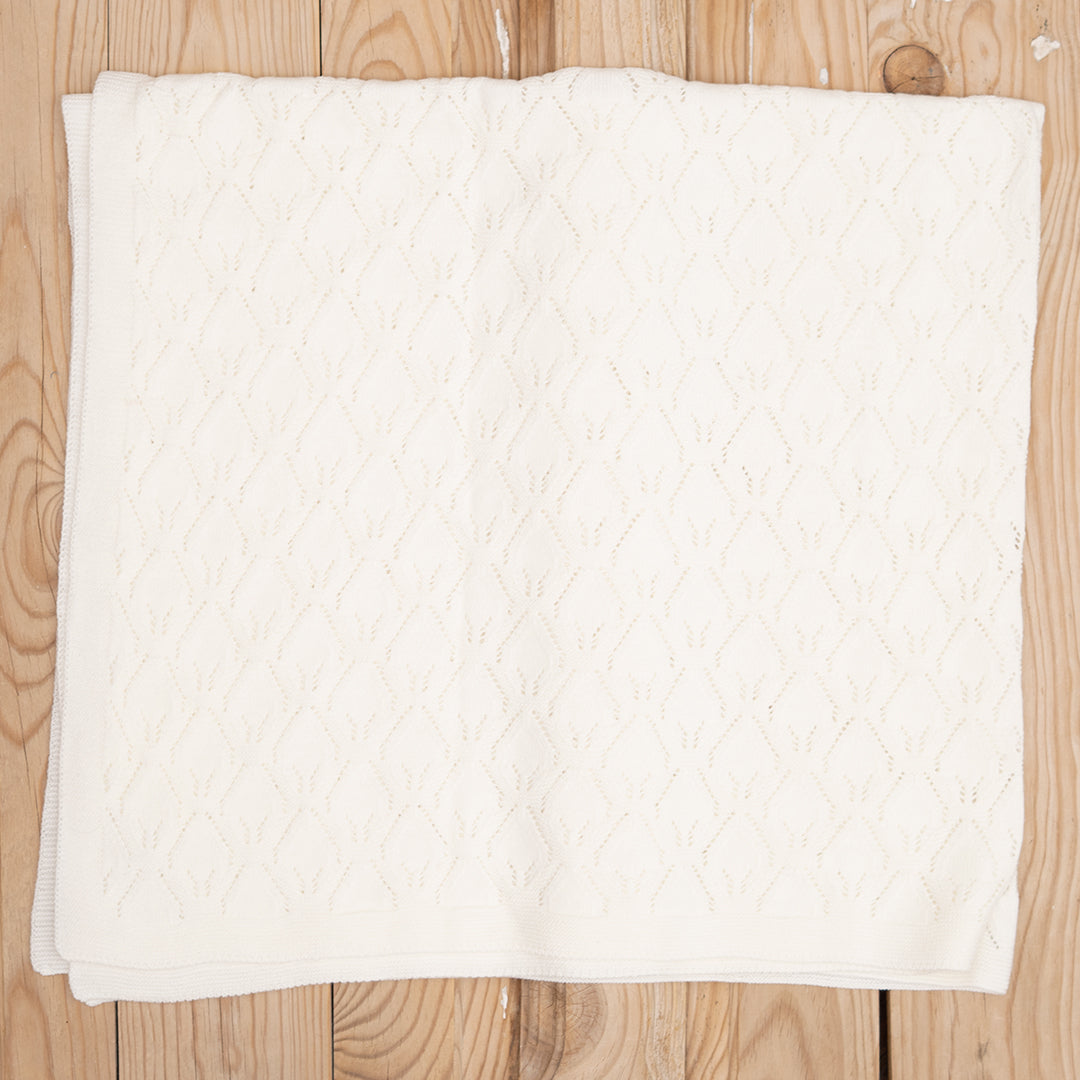 Preciosa y suave toquilla calada para bebés. Ideal para arropar a los recién nacidos y además vestirles por su delicado y bonito dibujo. Disponible en marfil, rosa y verde.