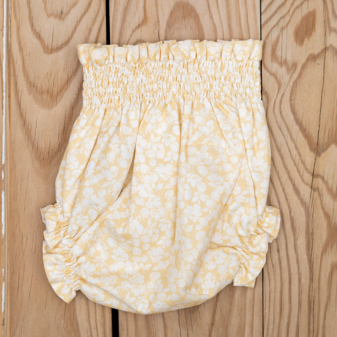 Cubrepañal engomado en precioso tejido de flores amarillas pastel. Gomas blanditas y suaves que no aprietan a los bebés.