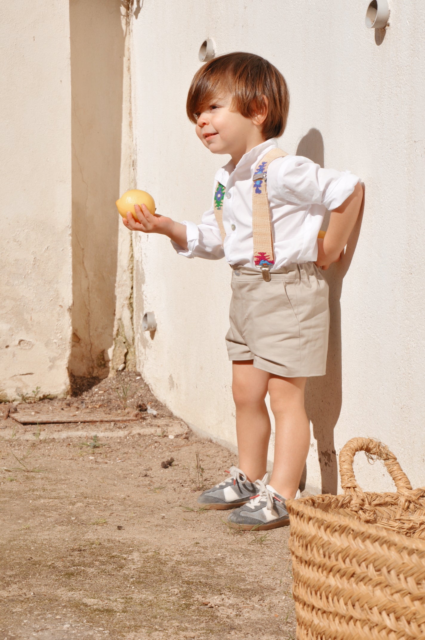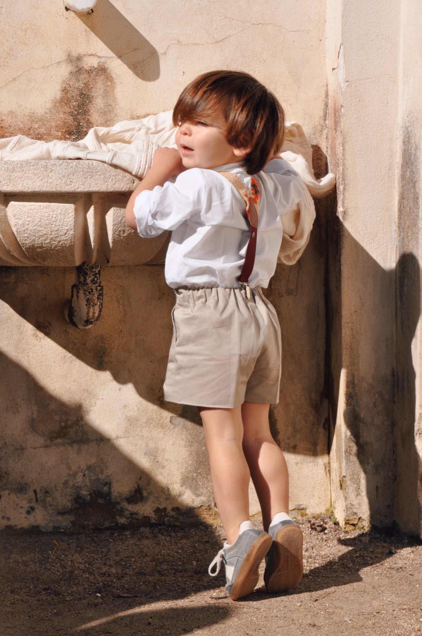 Pantalón corto color arena, tejido muy fresquido y suave para los niños. Tiene bolsillos, botón delantero y cremallera, así como gomas ajustables en el interior de la cinturilla para adaptarlo perfectamente a su cuerpecito. Una prenda súper combinable y elegante para los más pequeños.
